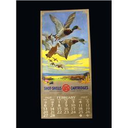 1927 United States Cartridge Calendar, original band on top, February page only. Depicting Flying ducks. Framed and matted. Excellent original conditi