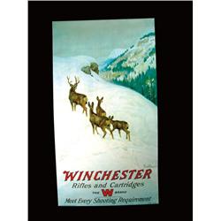 1912 Winchester Poster, Phillip R. Goodwin artist. Depicting deer in snow scene. Excellent original condition. 16 1/2 X 30 inches.