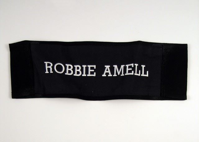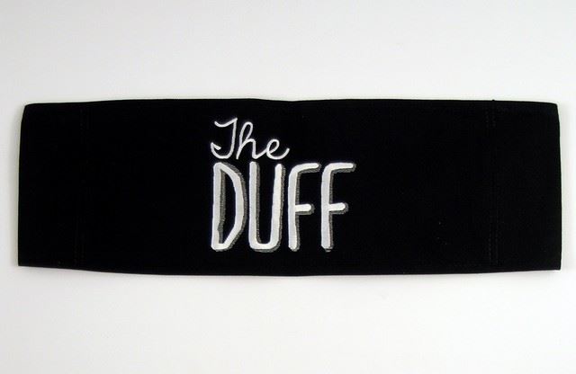 Robbie Amell's black and white with The Duff on the front chairback. (approx. 21" x 7")