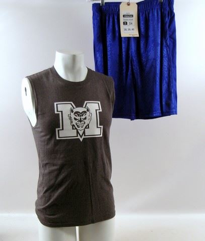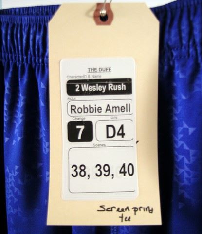 Wesley (Robbie Amell) screen worn, hero, grey sleeveless crew neck with high school logo on the front 'Champion' t-shirt, (size S) and bright blue with self triangle design 'Old Navy' shorts. (size M) Includes wardrobe tag!