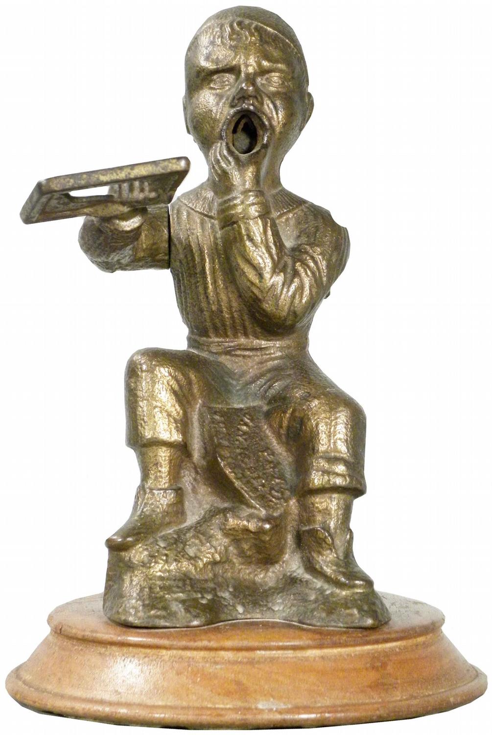 "The Dunce" Figural Cast Iron Cigar Tip Cutter. Patent 1888. Man in robe with hat. Excellent working condition. 7 inches tall.