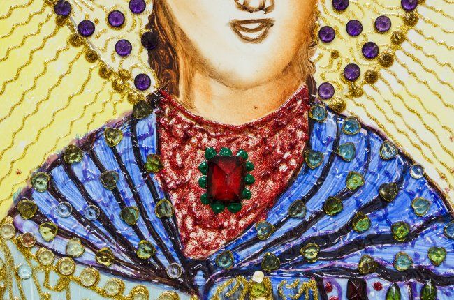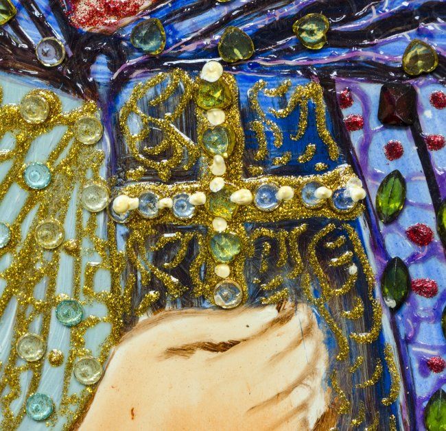 The Dutch Master William Verdult "Saint" Oil on Panel, Bejeweled. Frame Size: Image Size: 20" x 24" Comes with Apraisal Itemization and Value Form. The Appraised value for this piece is $215,000.00. Due to size, additional shipping charges may apply. W3890