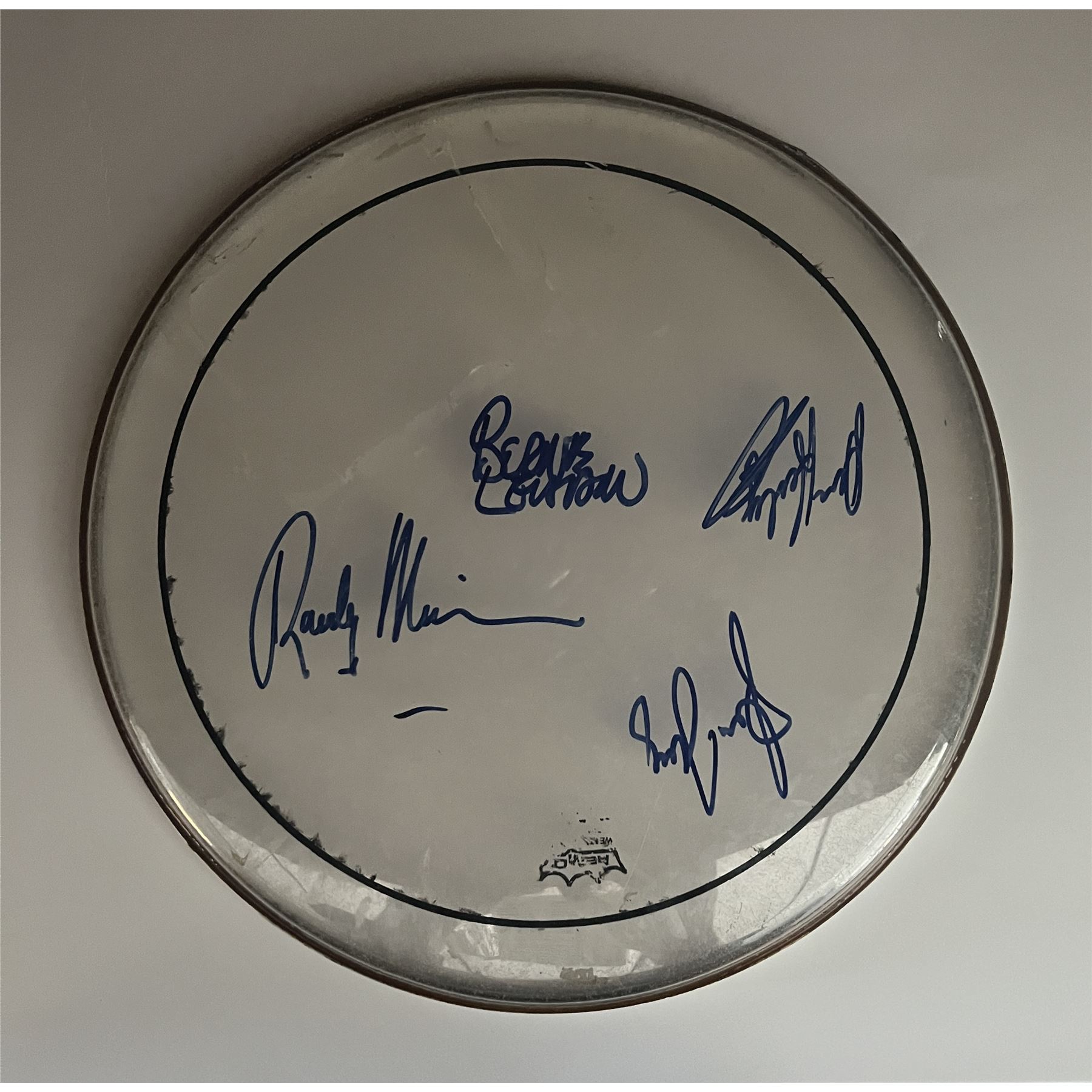 The Eagles signed drum head autographed by Don Henley, Randy Meisner, Glenn Frey and Bernie Leadon. 14 inches