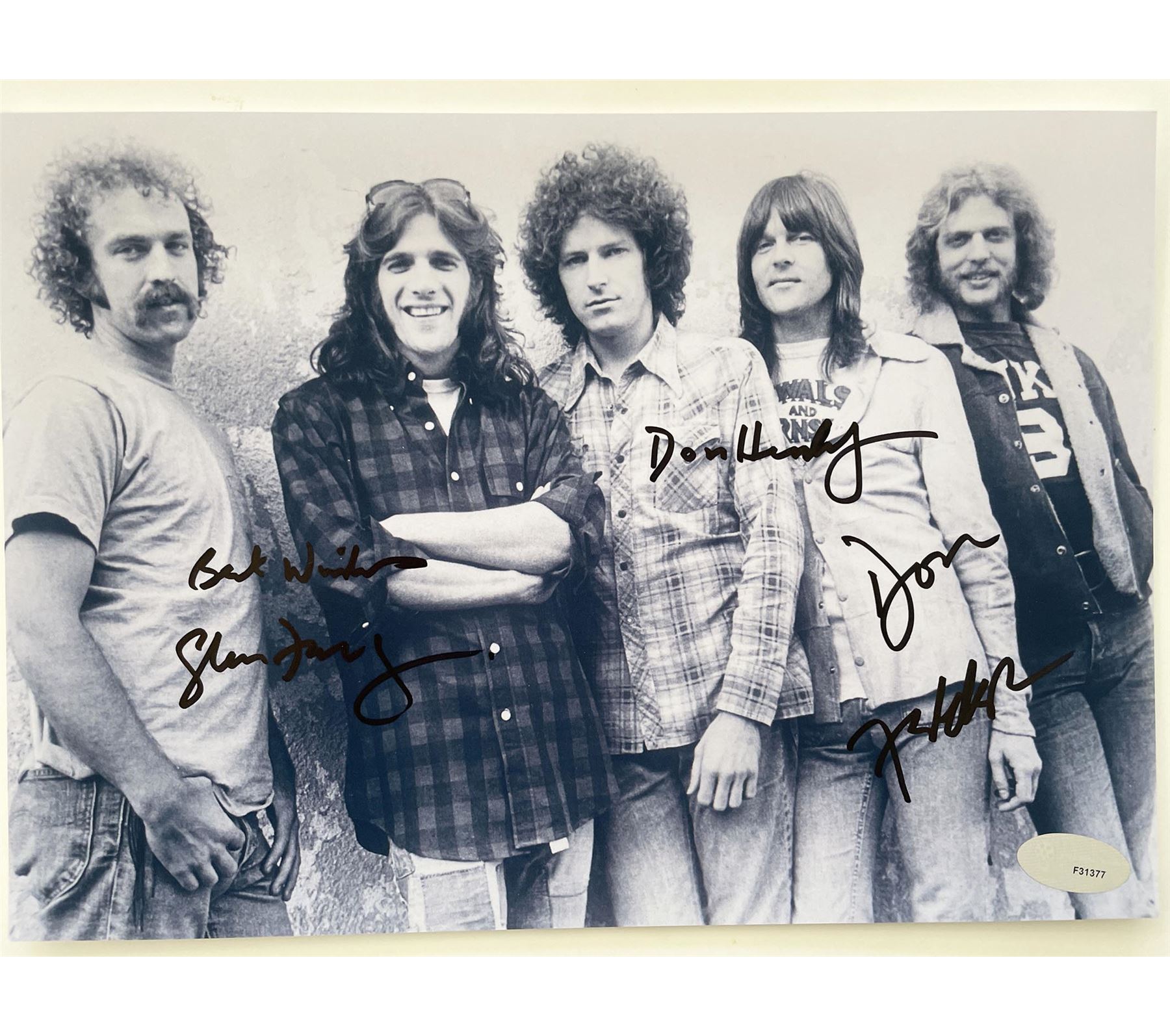 The Eagles signed photo autographed by Don Felder, Don Henley and Glenn Frey. 8x10 inches