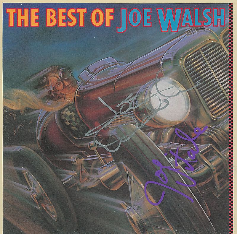 Two albums: The Best of Joe Walsh, signed on the front cover in silver ink by Walsh and in purple ink by Joe Vitale; and Randy Meisner’s self-titled album, signed on the front cover in silver ink. The records are included. In fine condition.