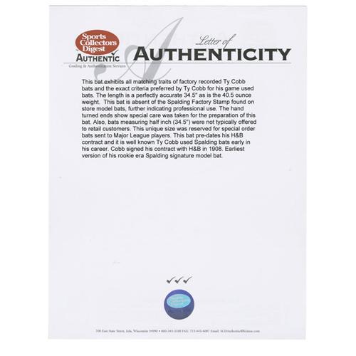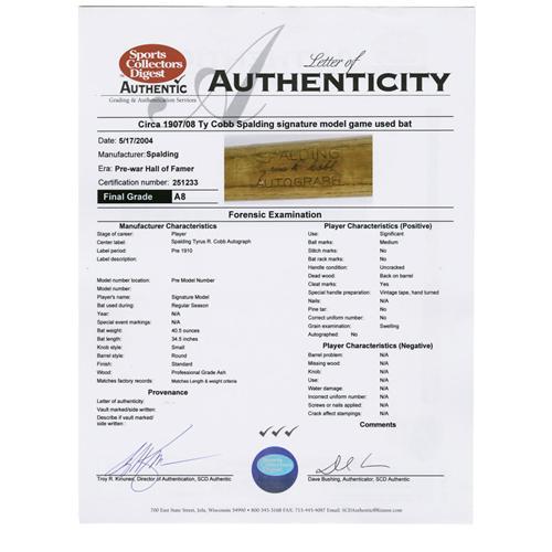 "The Earliest Known Ty Cobb Game Used Bat, 1907"