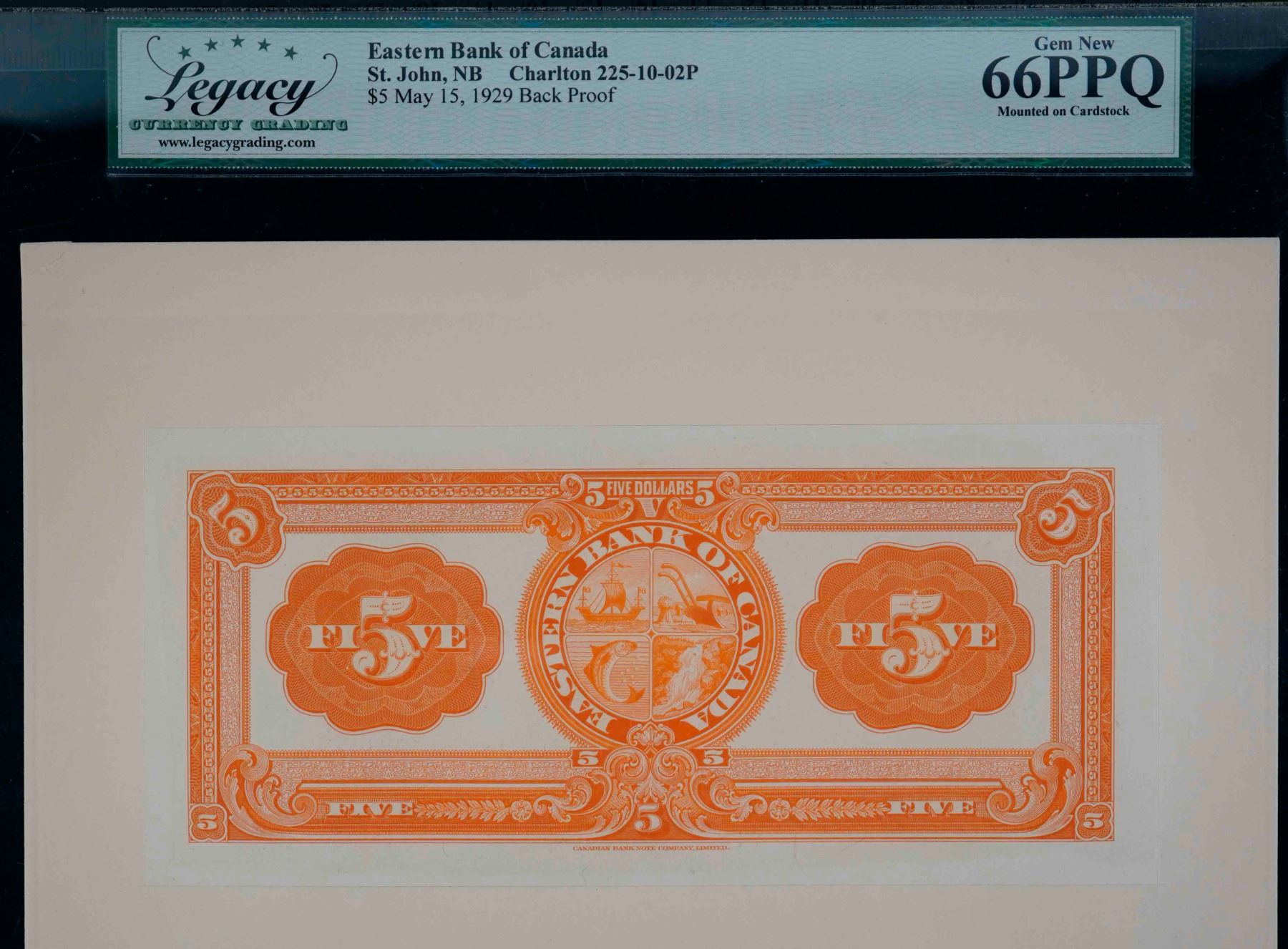 The Eastern Bank of Canada; 1929 $5 CH-225-10-02BP, LCG Superb Gem Uncirculated-66PPQ. Coloured exam