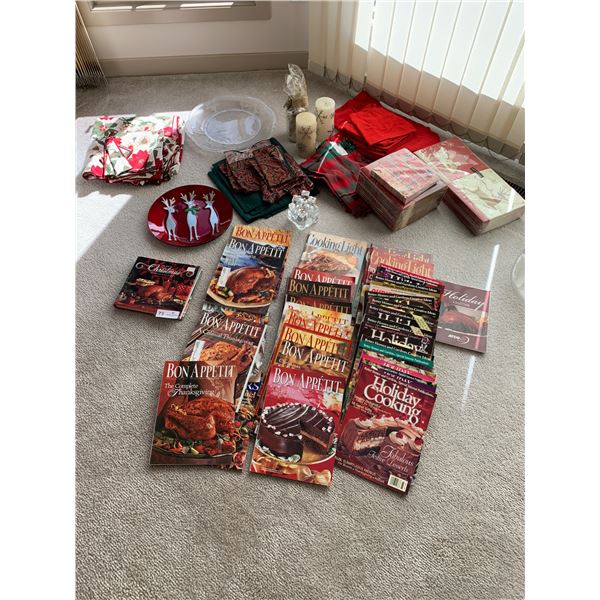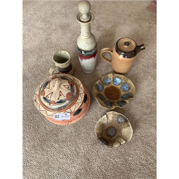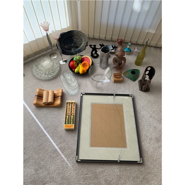 Including glass/crystalware, paper-mache fruits and vegetables, decorative plates, punchbowl, stone Mayan sculpture, and an empty picture frame (25&...