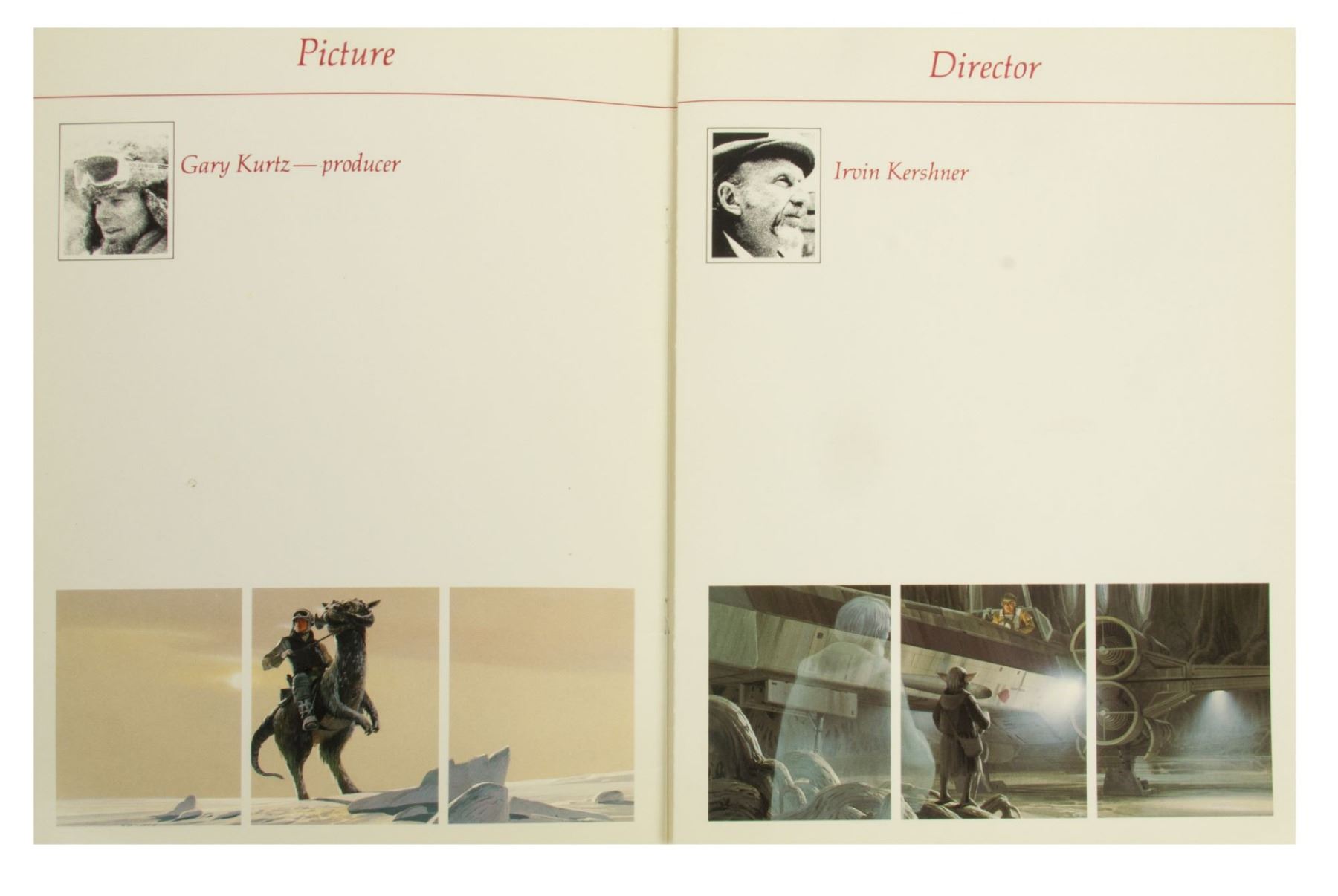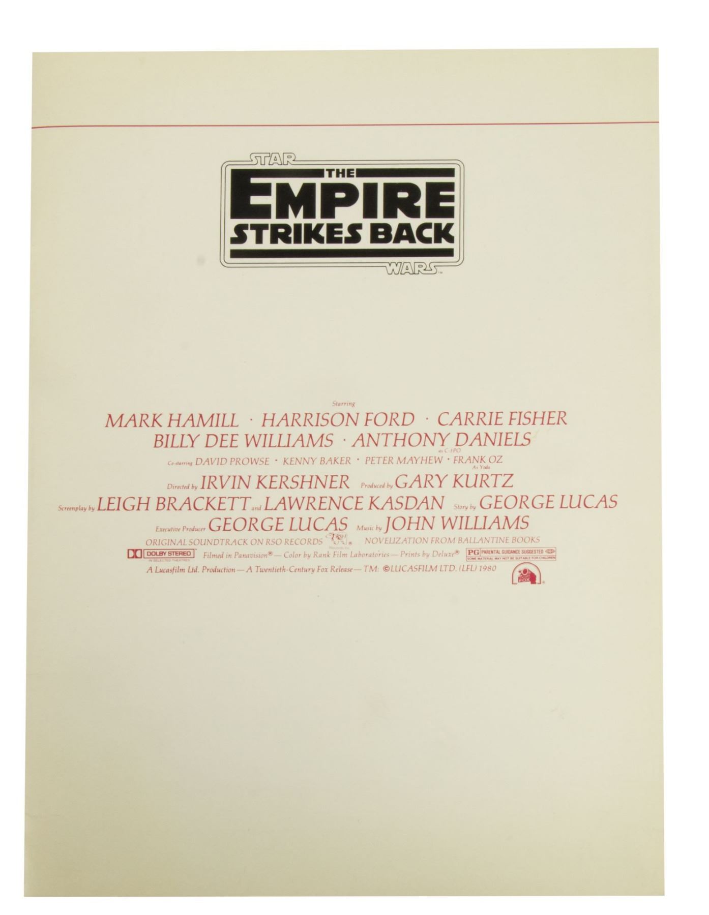(LucasFilm, 1980) A rare oversize fold-out created for awards promotions of "The Empire Strikes Back". Featuring imagery from the film as well as production credits, the program measures 11.75"x8.5" folded and unfolds to 11.75"x33.5". In good condition with some edge-wear.