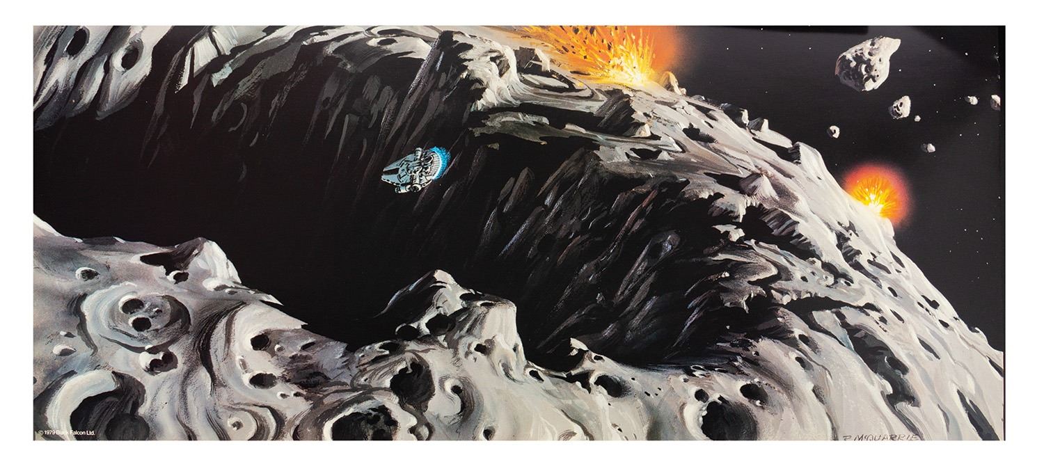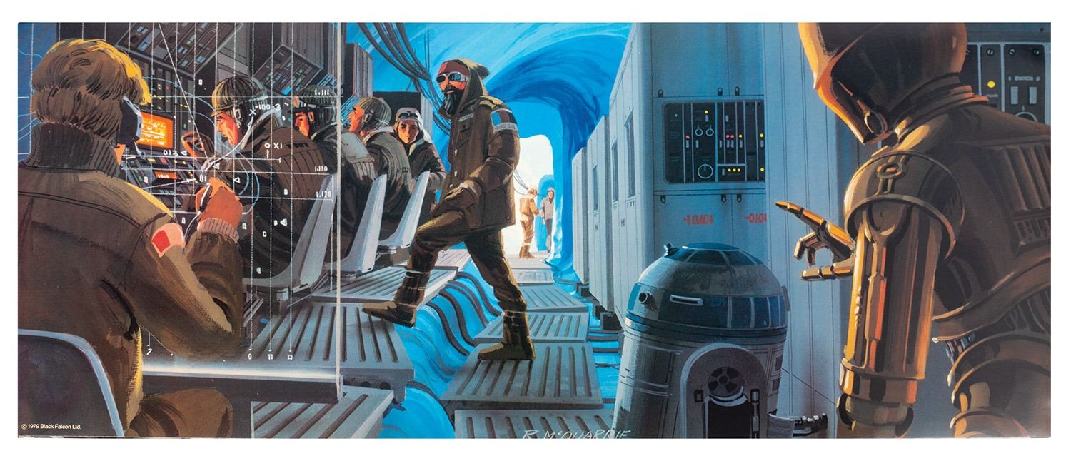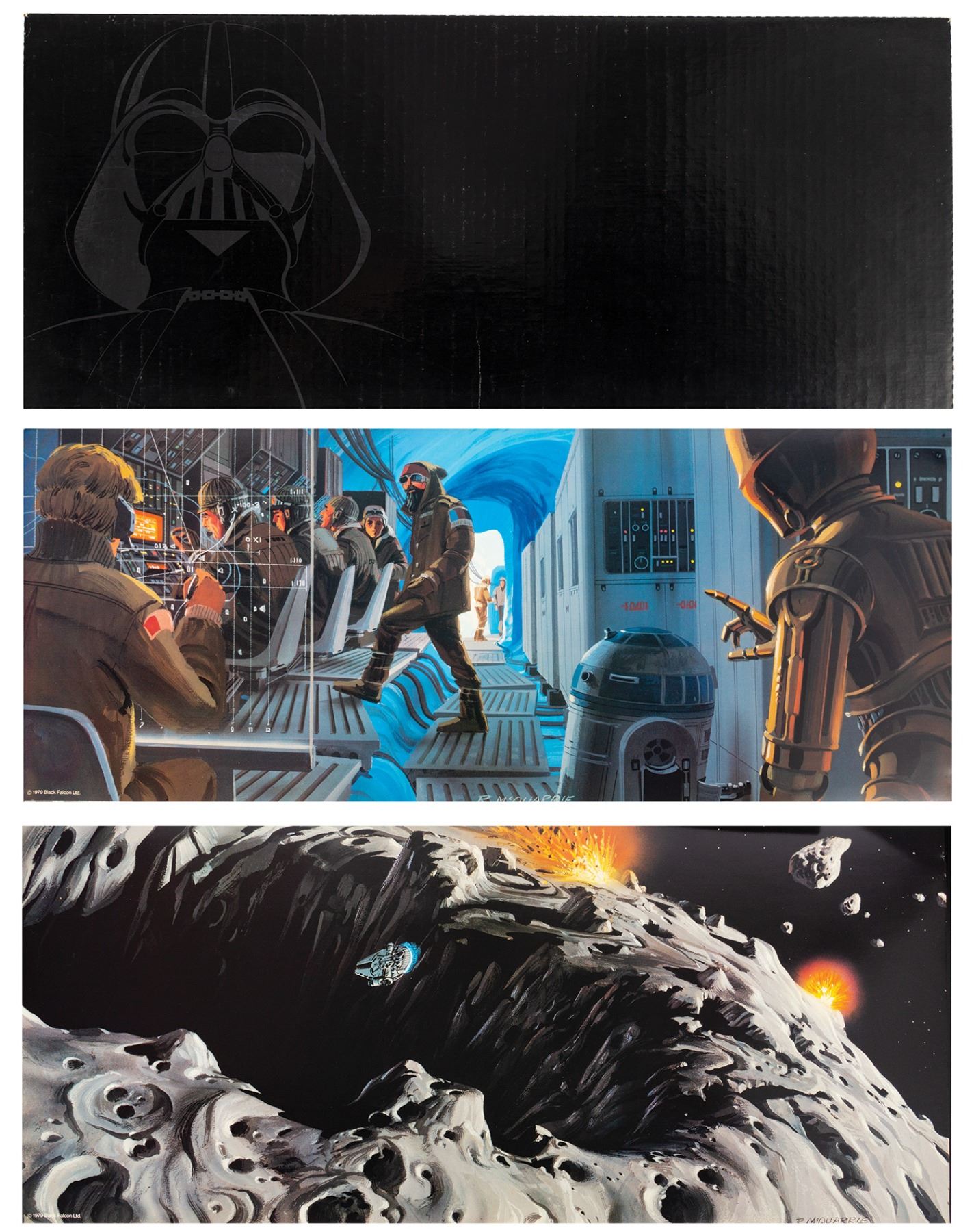 (Lucasfilm, 1979) A rare promotional portfolio for The Empire Strikes Back. The portfolio includes a 4-ounce Darth Vader lead medallion on the cover and contains a pair of Ralph McQuarrie concept art prints. The outer box measures 10.75"x23.5" and 0.75" deep. The prints are in good condition with minor edge wear, and the inner fold-out is in fair condition with some small tears and wear from use.