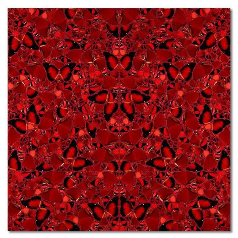 "The Empresses (H10-3 Theodora)" is a limited edition laminated giclee on aluminium composite, screen printed with glitter by Damien Hirst. The piece is signed and numbered on its label and comes with a certificate of authenticity. Measures approximately 39" x 39".