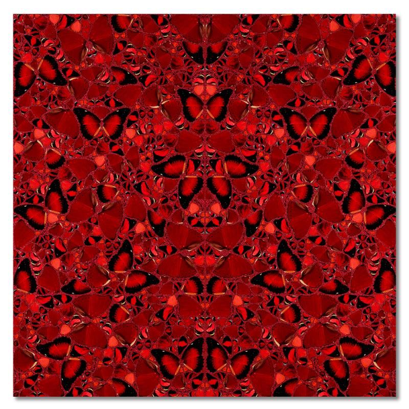 "The Empresses (H10-3 Theodora)" is a limited edition laminated giclee on aluminium composite, screen printed with glitter by Damien Hirst. The piece is signed and numbered on its label and comes with a certificate of authenticity. Measures approximately 39" x 39".