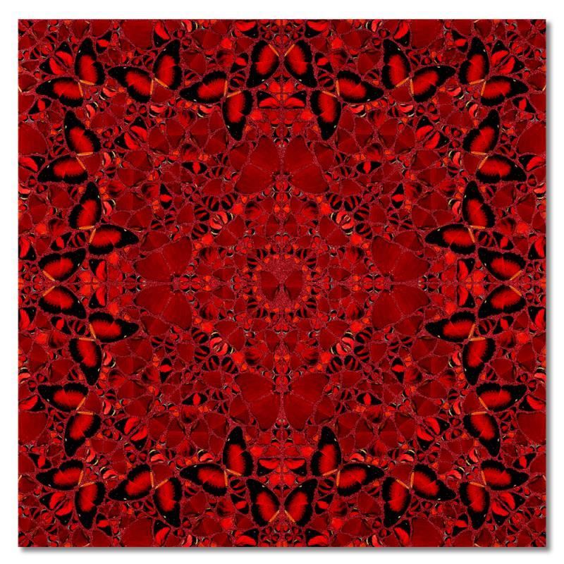 "The Empresses Suite" is a 5 piece suite of limited editions individually numbered and signed. The pieces are laminated giclee on aluminium composite, screen printed with glitter by Damien Hirst. The suite has matching numbers in their respective editions and each pieces is signed and numbered on their labels and each come with a certificate of authenticity. Measures approximately 39" x 39" (each piece).