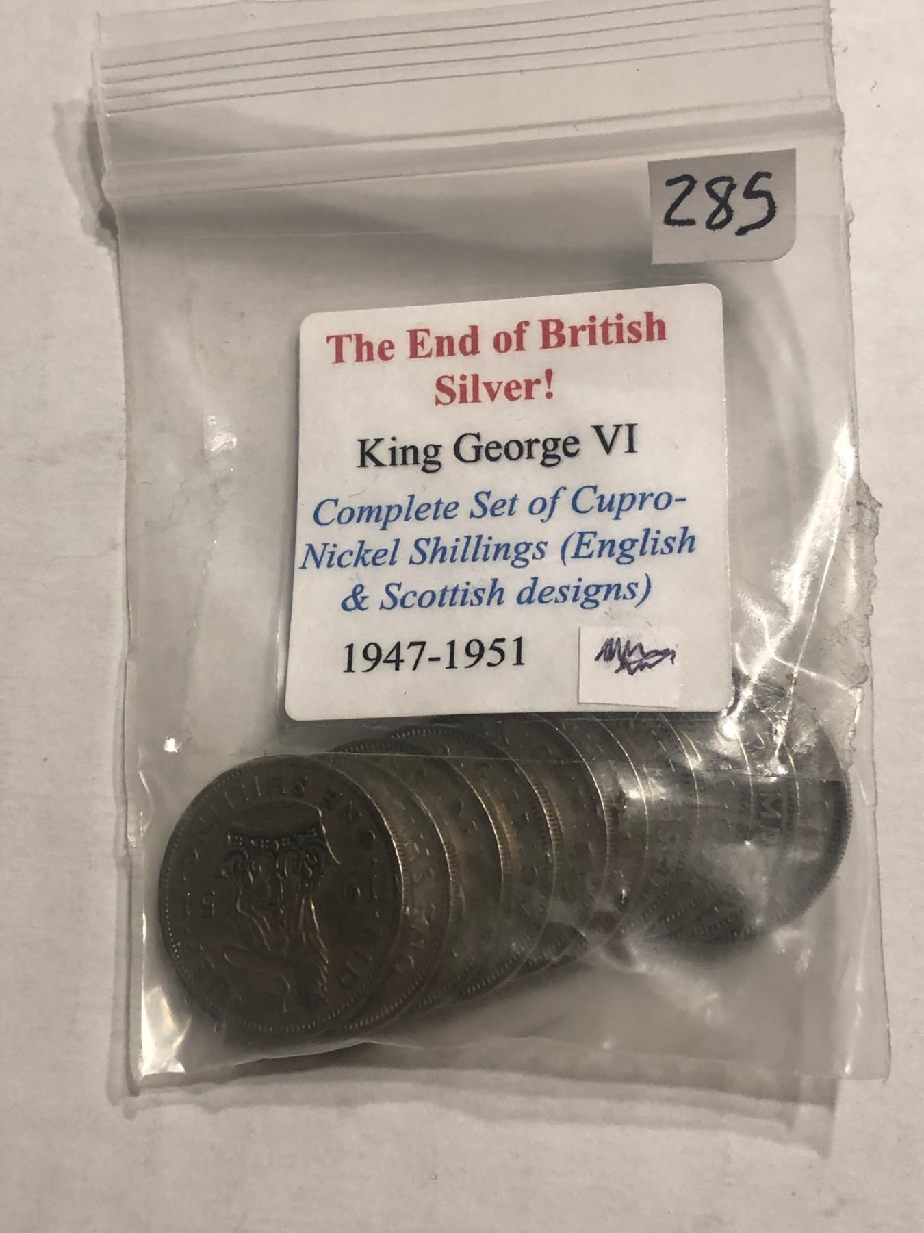 The End of British SILVER 1947-1951 KING GEORGE VI Complete Set English & Scottish Designs 10 Total