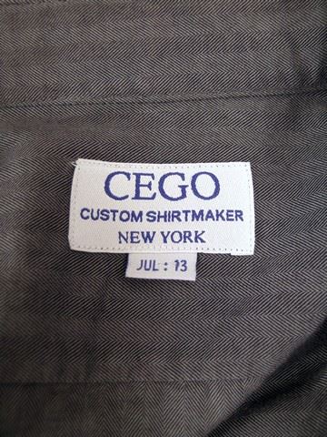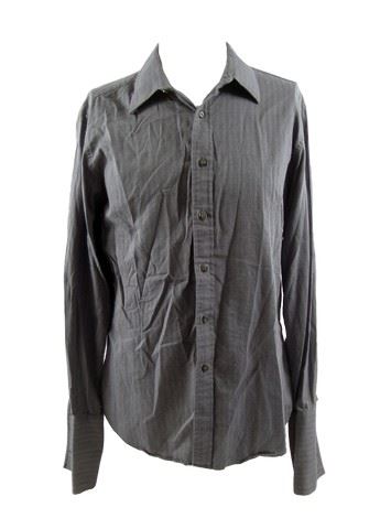 Direct from the thriller, The Equalizer (2014) is Teddy's (Marton Csokas) grey with self stripes long sleeve button front 'Cego' shirt. The date July 13 is inscribed inside the neck of the shirt.