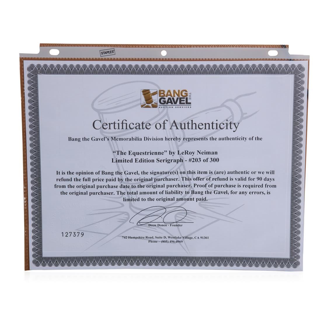 This limited edition #203 of 300 serigraph is pencil signed by world famous artist LeRoy Neiman. LeRoy Neiman was an American artist known for his brilliantly colored, expressionist paintings and screen prints of athletes, musicians, and sporting events. 27" x 40" framed.