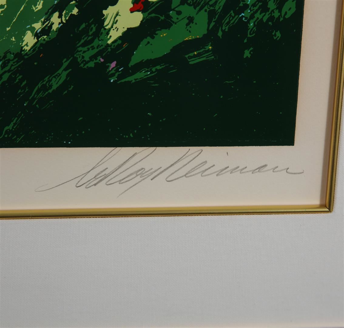 This limited edition #203 of 300 serigraph is pencil signed by world famous artist LeRoy Neiman. LeRoy Neiman was an American artist known for his brilliantly colored, expressionist paintings and screen prints of athletes, musicians, and sporting events. 27" x 40" framed.