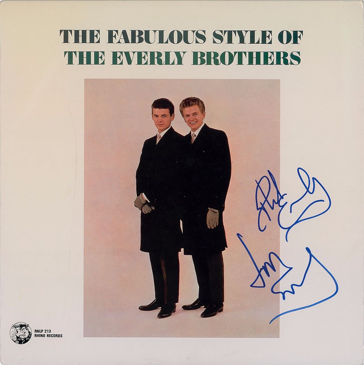 The Fabulous Style of the Everly Brothers album signed in person on the front cover in blue felt tip by Phil Everly and Don Everly. In fine condition, with a crease to upper right corner and trivial edgewear. The record is included.