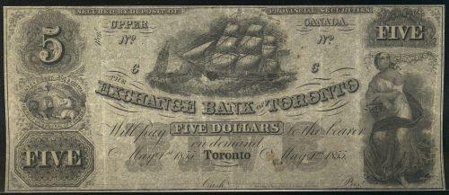The Exchange Bank of Toronto 1855 $5 255-10-06r VF-EF