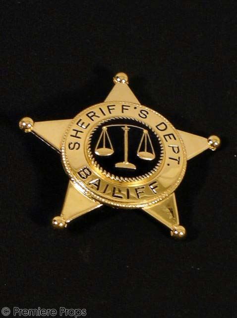 Gold “Smith & Warren” Sherriff's Dept. Bailiff Star Badge (approx. size 2 1/4” around / black accents and engraving “Sheriff's Dept. Bailiff” / pin back) (used onscreen)