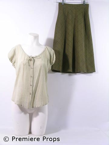 The Exorcism of Emily Rose - As seen in the horror thriller, this is Emily's (Jennifer Carpenter) screen worn thin greenish with vertical red and green stripes, thin cotton button down short sleeve top, (no size) and green with black plaid zipper on the back skirt. (no size) This screen worn costumes was used in college sequences. (EER1028)