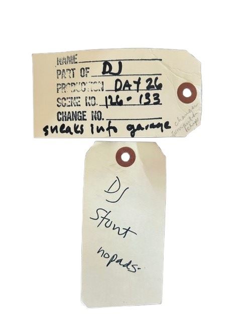 The Extreme Adventures of Super Dave (2000) - DJ's (Steve Van Wormer) screen worn, black leather jacket from LA ROXX with white trim and a pair of CK Calvin Klein black jeans (size 30). Inside both tags reads DJ stunt.