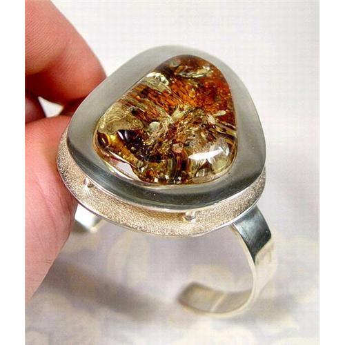 The FINEST Baltic Amber Sterling Cuff~45.4 GRAMS...It ranks among the finest cuffs we have to offer. A very special piece of jewelry which comes with our highest recommendations ~Full of magical inclusions. The classical style is executed to perfection leaving the finest NATURAL Baltic amber stone to shine! Measurements are 46x40x16mm and for those not familiar with metric 25mm=1". Inside measurement 5.5" with a 1.1" opening. Heavy walled silver which is not adjustable. Truly a designer piece of jewelry worthy of consideration.