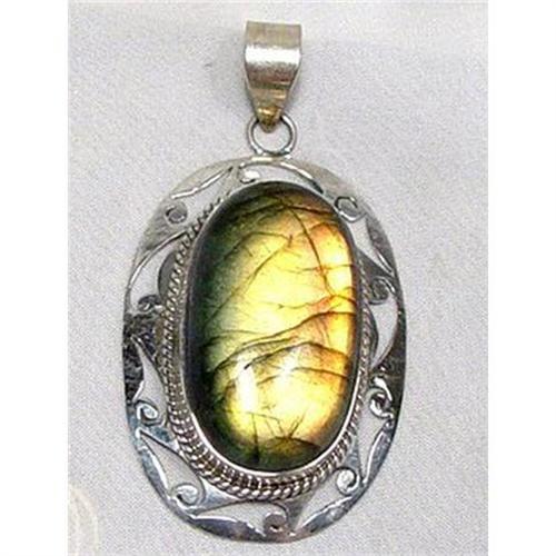 Please note I only ship to the USA and Canada and if paypals is used the shipping address MUST BE CONFIRMED. <p>This is absolutely the finest flawless natural labradorite gemstone we have the opportunity to offer you. If you desire the BEST you might not want to let this pass you by. This RAINBOW fire labradorite oval jaali pendant has measurments of 57x36x12mm without the bale and a gram weight of 24.1. The rainbow of fire is illuminated from every angle. Ranging from the deep sea green to soft orange and comes with our highest recommendations. (c-670)