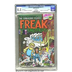 The Fabulous Furry Freak Brothers #1 Fred Todd File Copy (Rip Off Press, 1971) CGC VF+ 8.5 Pink pages. In the early 1970s America was a land in crisis. We had power shortages, gas shortages, but did you know we had a paper shortage? At Rip Off Press, they would print books by hand every day, so by early 1973, the Freak Brothers were already up to their eighth printing. When more orders came in, but no paper was to be found, the pink page issues were born. Fred Todd bought the only paper he could get to keep Freaks numbers one and two in print. These pink page editions were printed in very small quantities and are very collectible today. Don't miss out on the chance to add this file copy to your collection! Overstreet does not list Undergrounds at this time. From the collection of Rip Off Press founder Fred Todd. Important notice: Heritage usually auctions material at the rate of 200-250 lots per hour. On some occasions eBay Live bid software or the Internet may not be able to keep up with the pace of the auction. We recommend placing a realistic absentee bid now as insurance to avoid disappointment. Occasionally the auctioneer may eliminate or reject an eBay Live bid, and the auctioneer may also reopen a lot after the close of the eBay live bidding (usually because we missed an audience bid), and may reject your bid even if it shows you as the winning bidder. By bidding via eBay Live, you agree that Heritage may award the lot to another bidder at its sole discretion under the circumstances described above or any other reasonable circumstances. Since eBay bids are not shown to us until we open the lot on the floor, we treat those bids just like floor bids. In most cases the floor responds before the eBay bid is presented to us, due to Internet lag time, so for consistency we have made it a policy that floor bids are always considered first over tie eBay live bids. Also please note that all Heritage lots purchased through eBay Live carry a 20% Buyer's Premium. Please make sure you read the Terms and Conditions before you bid.
