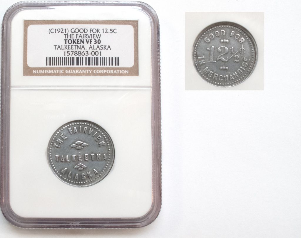 Certified VF 30. The Fairview, Talkeetna, Alaska. Good for 12 1/2c in Merchandise. Al. C1921City: TalkeetnaCounty: Matanuska-SusitnaState: AKDate: c1921