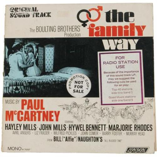 <B>"The Family Way" Soundtrack Mono LP Music by Paul McCartney (London 76007, 1967).</B></I> Promotional copy of what's considered to be the first solo album by any of the Beatles. Music arranged by George Martin. The movie starred Hayley Mills. Condition: VG-EX 6/ EX 7.<BR><BR><b>Shipping:</b> Recordings (<a target="_blank" href="http://www.heritageauctions.com/common/shipping.php">view shipping information</a>)