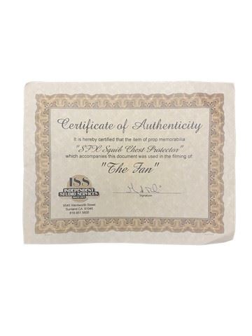 The Fan Gil Renard (Robert De Niro) screen worn, hero squibbed chest protector and baseball cap.