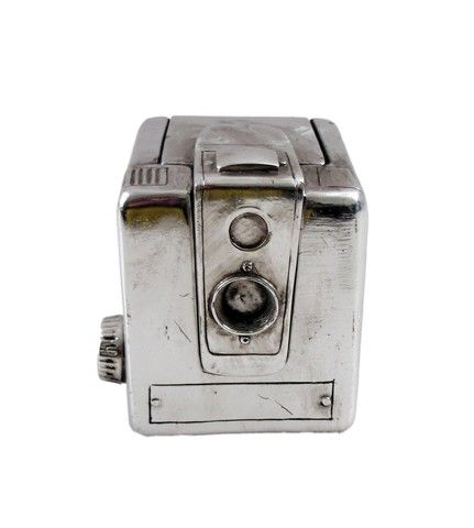 The Fifth Element Camera Prop - French writer-director Luc Besson wanted to out due every American Sci-Fi movie ever made with his Bruce Willis starring futuristic "The Fifth Element" (1997), which was the highest budget French film ever made. This is a metal semi-steam-punk style vintage camera box from the movie. (Approx. 4 1/2" x 4 1/2").