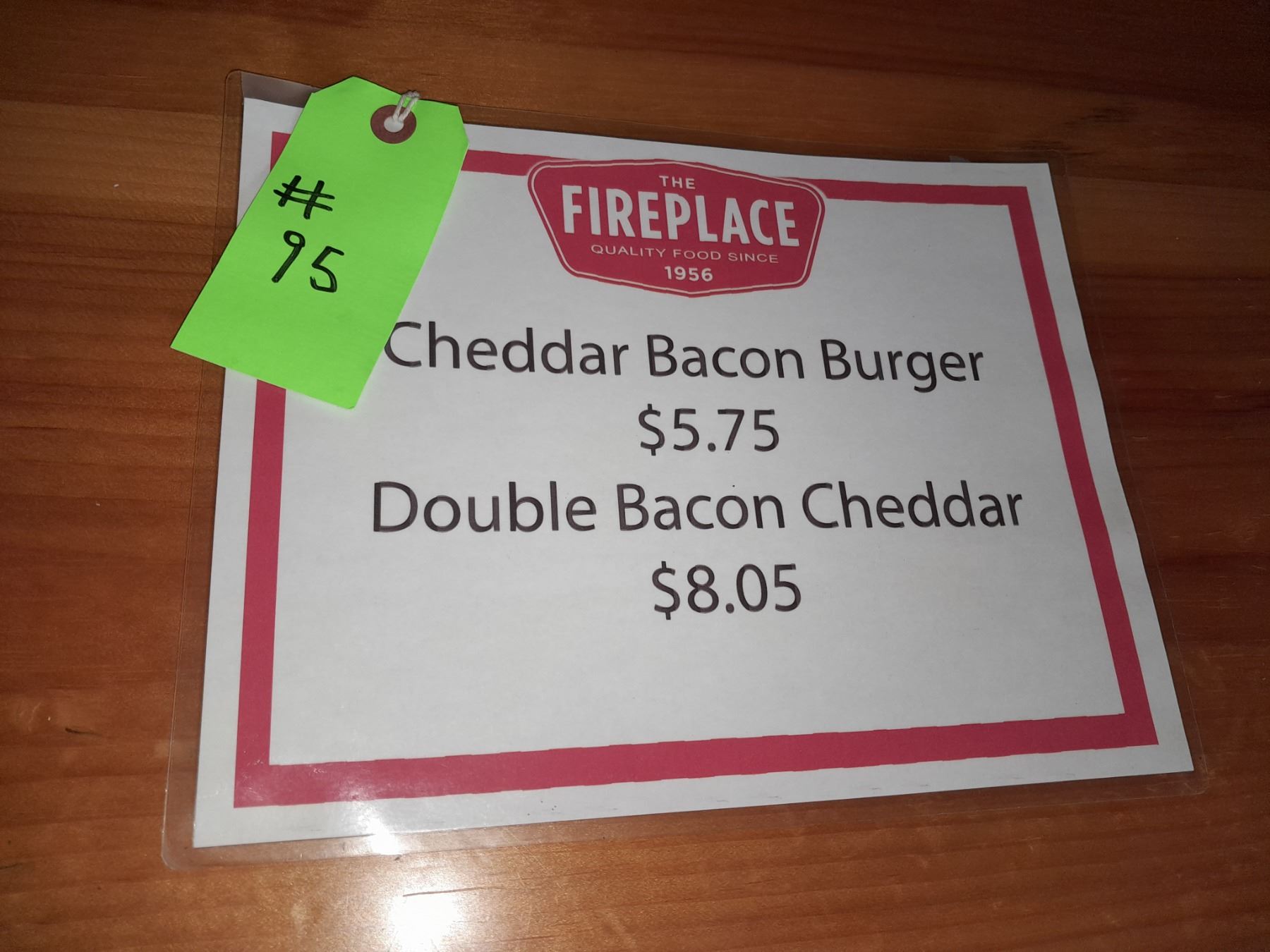 The Fireplace Restaurant - "Cheddar Bacon Burger" Sign