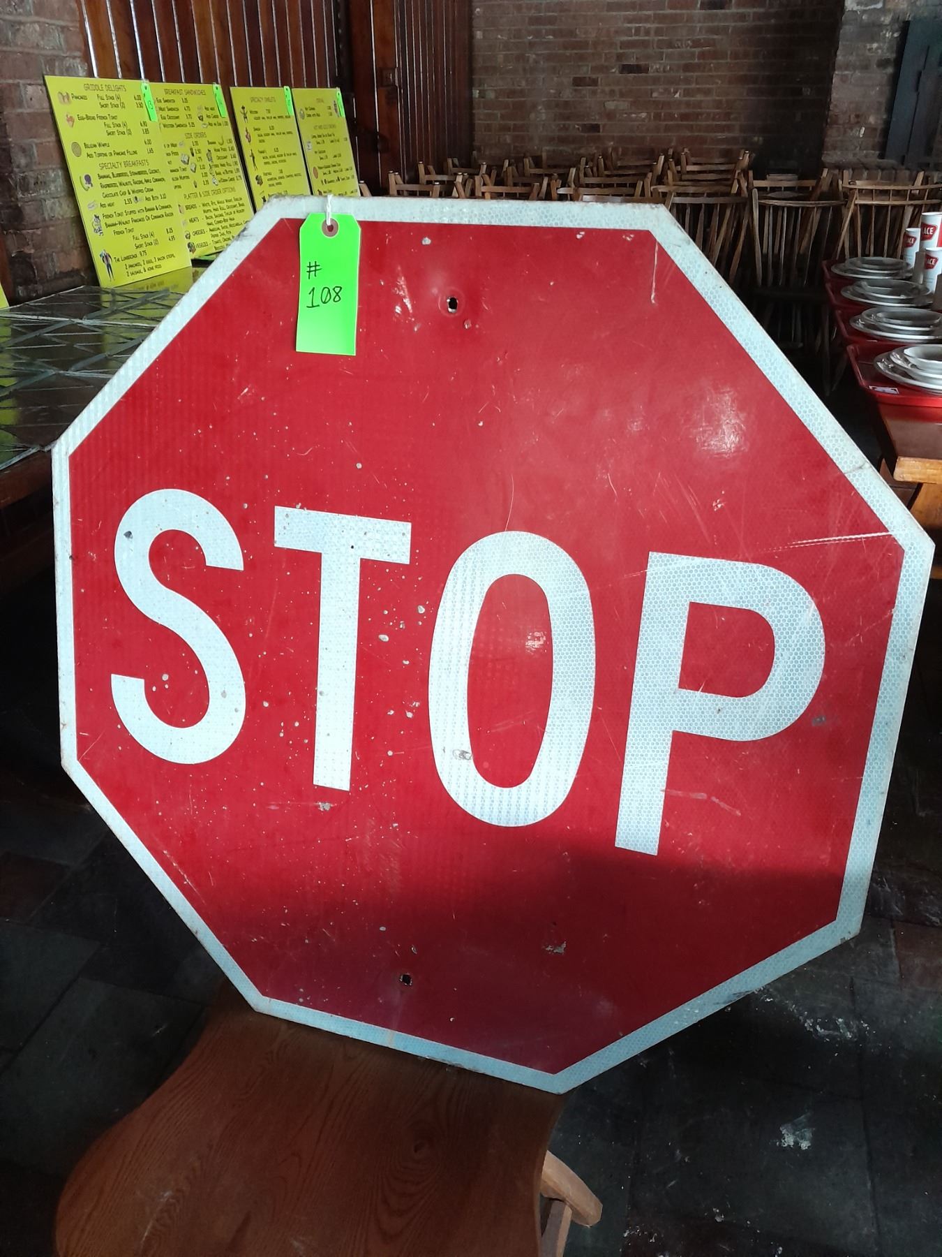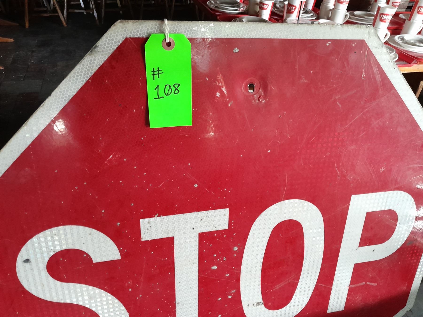 The Fireplace Restaurant - Metal Stop Street Sign