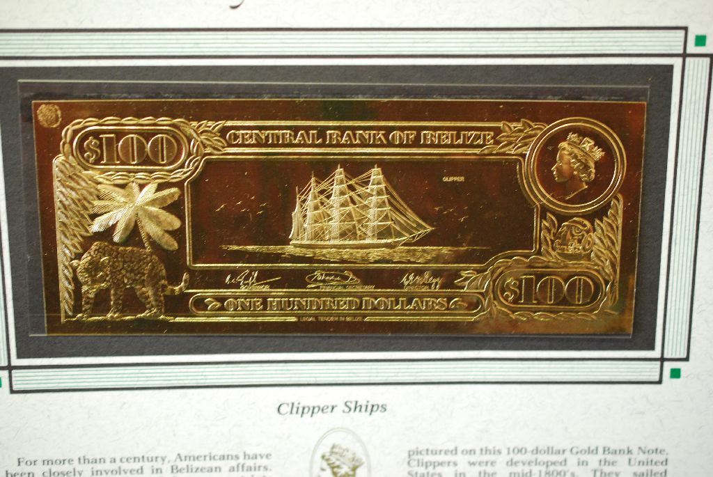 The First Gold Bank Notes Of Belize; Clipper Ships Edition; EST. $5-10