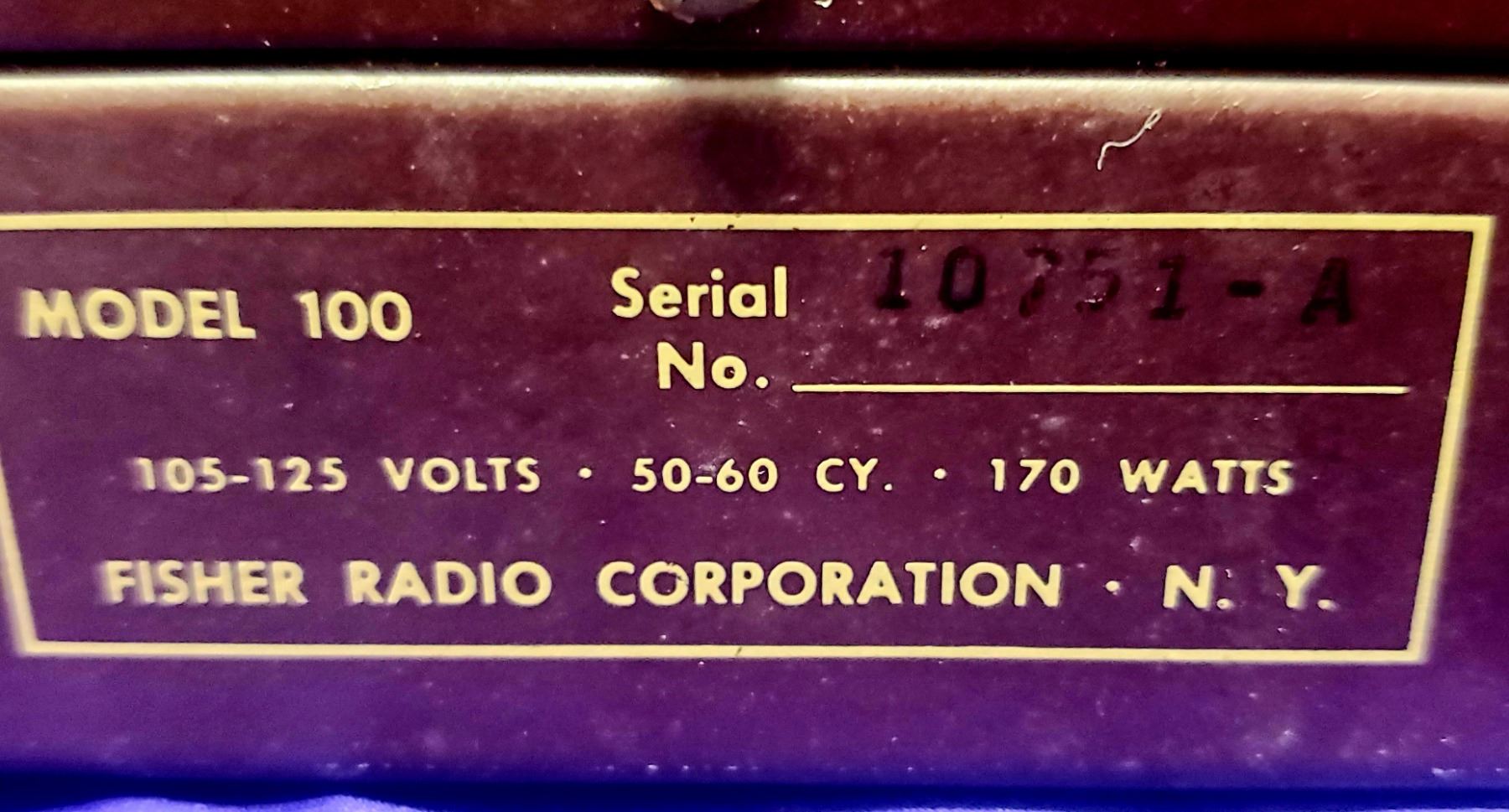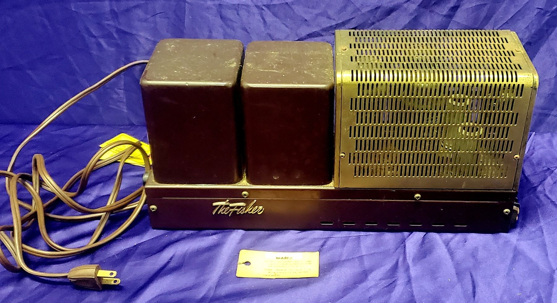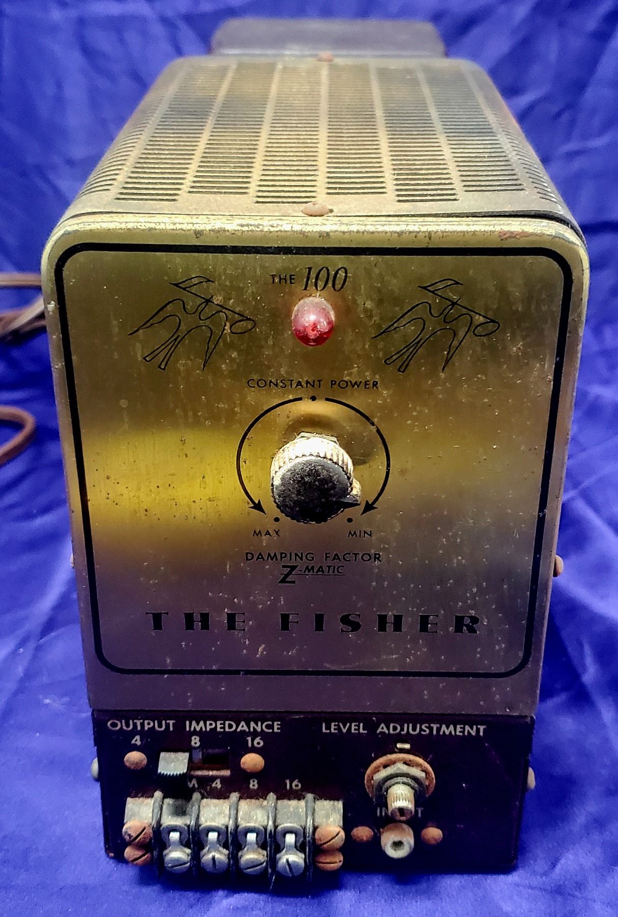 A Vintage The Fisher Model 100 Amp tube amplifier. This amp comes with Original tags. 7 inches H x 4.25 inches W x 14.5 inches D. Untested but the unit looks to be in good condition.