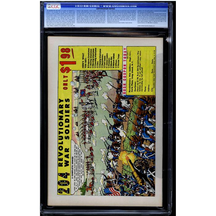 The Auctioneer has reserved the right to reject any and all bids, and to bid at the auction. Auctioneers Auctions are not on approval. Auctioneer does not allow certified material to be returned because of possible differences of opinion with respect to the grade offered by any third party organization, dealer, or service. Absolutely no guarantee of grade is offered for un-certified property sold and subsequently submitted to a third-party grading service. There will be no exceptions to this policy. Under extremely limited circumstances, (e.g. gross cataloging error) a purchaser, who did not bid from the floor, may request Auctioneer to evaluate voiding a sale; such request must be made in writing detailing the alleged gross error, and submission of the lot to the Auctioneer must be pre-approved by the Auctioneer. Bidder must notify Auctioneer in writing of such request within three (3) days of the non-floor bidder receipt of the lot. Any lot that is to be evaluated must be in our offices within 30 days after Auction. Grading does not qualify for this evaluation process nor do such complaints constitute a basis to challenge the authenticity of a lot. AFTER THAT 30-DAY PERIOD, NO LOTS MAY BE RETURNED FOR REASONS OTHER THAN AUTHENTICITY. Lots returned must be housed intact in the original holder. No lots purchased by floor Bidders may be returned (including those Bidders acting as agents for others). Late remittance for purchases may be considered just cause to revoke all return privileges. B: Auctions conducted solely on the Internet have a THREE (3) DAY RETURN POLICY: Lots paid for within seven days of the Auction closing are sold with a three (3) day return privilege. You may return lots under the following conditions: Within three days of receipt of the lot, you must first notify Auctioneer by contacting Client Service by phone (314-680-8599) or e-mail (moundcityauctions@gmail.com), and immediately mail the lot(s) fully insured to the attention of Returns, Mound City Auctions 1081 Teson Rd. Hazelwood, MO. 63042. Lots must be housed intact in their original holder and in their original condition. You are responsible for the insured, safe delivery of any lots. Auctioneer will not be responsible for lots returned in non-registered mail or lots returned without prior authorization per section B. A non-negotiable return fee of 5% of the purchase price ($10 per lot minimum) will be deducted from the refund for each returned lot or billed directly. Postage and handling fees are not refunded. After the three-day period (from receipt), no items may be returned for any reason. Late remittance for purchases revokes all Return-Restock privileges. C: Bidders who have inspected the lots prior to the auction will not be granted any return privileges. D: Comic books sold referencing a third-party grading service are sold “as is” without any express or implied warranty. Certain warranties may be available from the grading services and the Bidder is referred to them for further details: Certified Guaranty Company, LLC. (CGC), P.O. Box 4738, Sarasota, FL 34230. E: Bidders who intend to challenge authenticity or provenance of a lot must notify Auctioneer in writing within thirty (30) days of the Auctions conclusion. In the event Auctioneer cannot deliver the lot or subsequently it is established that the lot lacks title, provenance, authenticity, or other transfer or condition issue is claimed, Auctioneer's liability shall be limited to rescission of sale and refund of purchase price; in no case shall Auctioneer's maximum liability exceed the high bid on that lot, which bid shall be deemed for all purposes the value of the lot. After one year has elapsed, Auctioneer's maximum liability shall be limited to any commissions and fees Auctioneer earned on that lot. F: All comics are guaranteed genuine, but are not guaranteed as to grade, since grading is a matter of opinion, an art and not a science, and therefore the opinion rendered by the Auctioneer or any third party grading service may not agree with the opinion of others (including trained experts), and the same expert may not grade the same item with the same grade at two different times. G: Since we cannot examine encapsulated comics, they are sold “as is”without our grading opinion, and may not be returned for any reason. Auctioneer shall not be liable for any patent or latent defect or controversy pertaining to or arising from any encapsulated collectible. In any such instance, purchaser's remedy, if any, shall be solely against the service certifying the collectible. H: Due to changing grading standards over time, differing interpretations, and to possible mishandling of items by subsequent owners, Auctioneer reserves the right to grade items differently than shown on certificates from any grading service that accompany the items. Auctioneer also reserves the right to grade items differently than the grades shown in the prior catalog should such items be reconsigned to any future auction. I: Although consensus grading is employed by most grading services, it should be noted as aforesaid that grading is not an exact science. In fact, it is entirely possible that if a lot is broken out of a plastic holder and resubmitted to another grading service or even to the same service, the lot could come back with a different grade assigned. J: Certification does not guarantee protection against the normal risks associated with potentially volatile markets. The degree of liquidity for certified collectibles will vary according to general market conditions and the particular lot involved. For some lots there may be no active market at all at certain points in time."