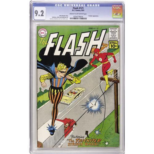 <B>The Flash #121 (DC, 1961) CGC NM- 9.2 Cream to off-white pages.</B></I> This copy seems to have left all others in the dust, speeding to a 9.2 grade with the rest of the pack behind at 8.5 or less. We aren't kidding with our oft-repeated statement that these early issues are very tough to find in NM- or above! Carmine Infantino is the cover and interior artist. Overstreet 2006 NM- 9.2 value = $310. CGC census 11/06: 1 in 9.2, none higher.<BR><BR><b>Shipping:</b> Slabbed Comic (<a target="_blank" href="http://www.heritageauctions.com/common/shipping.php">view shipping information</a>)