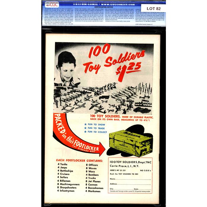 The Auctioneer has reserved the right to reject any and all bids, and to bid at the auction. Auctioneers Auctions are not on approval. Auctioneer does not allow certified material to be returned because of possible differences of opinion with respect to the grade offered by any third party organization, dealer, or service. Absolutely no guarantee of grade is offered for un-certified property sold and subsequently submitted to a third-party grading service. There will be no exceptions to this policy. Under extremely limited circumstances, (e.g. gross cataloging error) a purchaser, who did not bid from the floor, may request Auctioneer to evaluate voiding a sale; such request must be made in writing detailing the alleged gross error, and submission of the lot to the Auctioneer must be pre-approved by the Auctioneer. Bidder must notify Auctioneer in writing of such request within three (3) days of the non-floor bidder receipt of the lot. Any lot that is to be evaluated must be in our offices within 30 days after Auction. Grading does not qualify for this evaluation process nor do such complaints constitute a basis to challenge the authenticity of a lot. AFTER THAT 30-DAY PERIOD, NO LOTS MAY BE RETURNED FOR REASONS OTHER THAN AUTHENTICITY. Lots returned must be housed intact in the original holder. No lots purchased by floor Bidders may be returned (including those Bidders acting as agents for others). Late remittance for purchases may be considered just cause to revoke all return privileges. B: Auctions conducted solely on the Internet have a THREE (3) DAY RETURN POLICY: Lots paid for within seven days of the Auction closing are sold with a three (3) day return privilege. You may return lots under the following conditions: Within three days of receipt of the lot, you must first notify Auctioneer by contacting Client Service by phone (314-680-8599) or e-mail (moundcityauctions@gmail.com), and immediately mail the lot(s) fully insured to the attention of Returns, Mound City Auctions 1081 Teson Rd. Hazelwood, MO. 63042. Lots must be housed intact in their original holder and in their original condition. You are responsible for the insured, safe delivery of any lots. Auctioneer will not be responsible for lots returned in non-registered mail or lots returned without prior authorization per section B. A non-negotiable return fee of 5% of the purchase price ($10 per lot minimum) will be deducted from the refund for each returned lot or billed directly. Postage and handling fees are not refunded. After the three-day period (from receipt), no items may be returned for any reason. Late remittance for purchases revokes all Return-Restock privileges. C: Bidders who have inspected the lots prior to the auction will not be granted any return privileges. D: Comic books sold referencing a third-party grading service are sold “as is” without any express or implied warranty. Certain warranties may be available from the grading services and the Bidder is referred to them for further details: Certified Guaranty Company, LLC. (CGC), P.O. Box 4738, Sarasota, FL 34230. E: Bidders who intend to challenge authenticity or provenance of a lot must notify Auctioneer in writing within thirty (30) days of the Auctions conclusion. In the event Auctioneer cannot deliver the lot or subsequently it is established that the lot lacks title, provenance, authenticity, or other transfer or condition issue is claimed, Auctioneer's liability shall be limited to rescission of sale and refund of purchase price; in no case shall Auctioneer's maximum liability exceed the high bid on that lot, which bid shall be deemed for all purposes the value of the lot. After one year has elapsed, Auctioneer's maximum liability shall be limited to any commissions and fees Auctioneer earned on that lot. F: All comics are guaranteed genuine, but are not guaranteed as to grade, since grading is a matter of opinion, an art and not a science, and therefore the opinion rendered by the Auctioneer or any third party grading service may not agree with the opinion of others (including trained experts), and the same expert may not grade the same item with the same grade at two different times. G: Since we cannot examine encapsulated comics, they are sold “as is”without our grading opinion, and may not be returned for any reason. Auctioneer shall not be liable for any patent or latent defect or controversy pertaining to or arising from any encapsulated collectible. In any such instance, purchaser's remedy, if any, shall be solely against the service certifying the collectible. H: Due to changing grading standards over time, differing interpretations, and to possible mishandling of items by subsequent owners, Auctioneer reserves the right to grade items differently than shown on certificates from any grading service that accompany the items. Auctioneer also reserves the right to grade items differently than the grades shown in the prior catalog should such items be reconsigned to any future auction. I: Although consensus grading is employed by most grading services, it should be noted as aforesaid that grading is not an exact science. In fact, it is entirely possible that if a lot is broken out of a plastic holder and resubmitted to another grading service or even to the same service, the lot could come back with a different grade assigned. J: Certification does not guarantee protection against the normal risks associated with potentially volatile markets. The degree of liquidity for certified collectibles will vary according to general market conditions and the particular lot involved. For some lots there may be no active market at all at certain points in time."