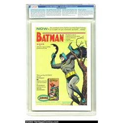 The Flash #152 (DC, 1965) CGC NM 9.4 Off-white to white pages. The Trickster escapes the Fastest Man Alive -- on a tricycle?! Carmine Infantino and Murphy Anderson offer this issue's spectacular cover and interior artwork. In CGC's latest census, a mere two copies grade higher than this gorgeous specimen. Overstreet 2003 NM 9.4 value = $105. Important notice: Heritage usually auctions material at the rate of 200-250 lots per hour. On some occasions eBay Live bid software or the Internet may not be able to keep up with the pace of the auction. We recommend placing a realistic absentee bid now as insurance to avoid disappointment. Occasionally the auctioneer may eliminate or reject an eBay Live bid, and the auctioneer may also reopen a lot after the close of the eBay live bidding (usually because we missed an audience bid), and may reject your bid even if it shows you as the winning bidder. By bidding via eBay Live, you agree that Heritage may award the lot to another bidder at its sole discretion under the circumstances described above or any other reasonable circumstances. Also please note that all Heritage lots purchased through eBay Live carry a 20% Buyer's Premium. Please make sure you read the Terms and Conditions before you bid.