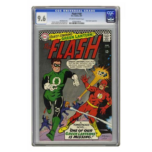 <B>The Flash #168 (DC, 1967) CGC NM+ 9.6 Off-white to white pages.</B></I> No copy of this issue has been graded higher by CGC to date. Green Lantern guest-stars in this Carmine Infantino-drawn issue. Overstreet 2005 NM- 9.2 value = $100. CGC census 12/05: 4 in 9.6, none higher.