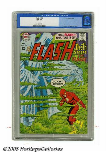 <B>The Flash #176 (DC, 1968) CGC NM 9.4 Off-white pages.</B></I> Carmine Infantino and Murphy Anderson cover. Infantino and Ross Andru art. Note that there is a three-inch crack on the back of the CGC holder, not affecting the comic. Overstreet 2005 NM- 9.2 value = $90. CGC census 1/05: 10 in 9.4, 5 higher.