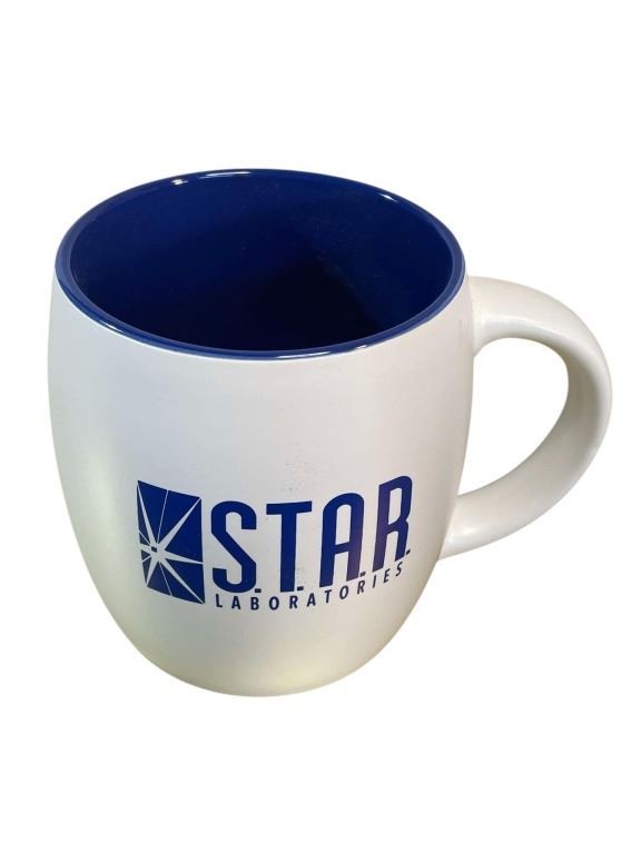 Original prop Star Laboratories mug used in the superhero television series 'The Flash' (2014-2023), developed by Greg Berlanti, Andrew Kreisberg, and Geoff Johns, airing on The CW. It is based on the Barry Allen incarnation of DC Comics character the Flash, a costumed superhero crime-fighter with the power to move at superhuman speeds. It is a spin-off from Arrow, existing in the same fictional universe known as Arrowverse.