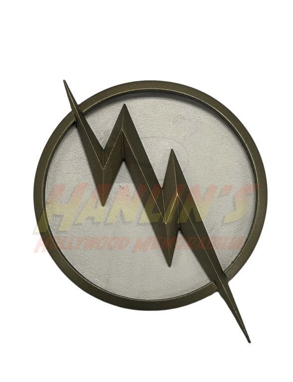 Original screen worn chest emblem worn by "Barry Allen", played by Grant Gustin in the superhero television series 'The Flash' (2014-), developed by Greg Berlanti, Andrew Kreisberg, and Geoff Johns, airing on The CW. It is based on the Barry Allen incarnation of DC Comics character the Flash, a costumed superhero crime-fighter with the power to move at superhuman speeds. It is a spin-off from Arrow, existing in the same fictional universe known as Arrowverse.