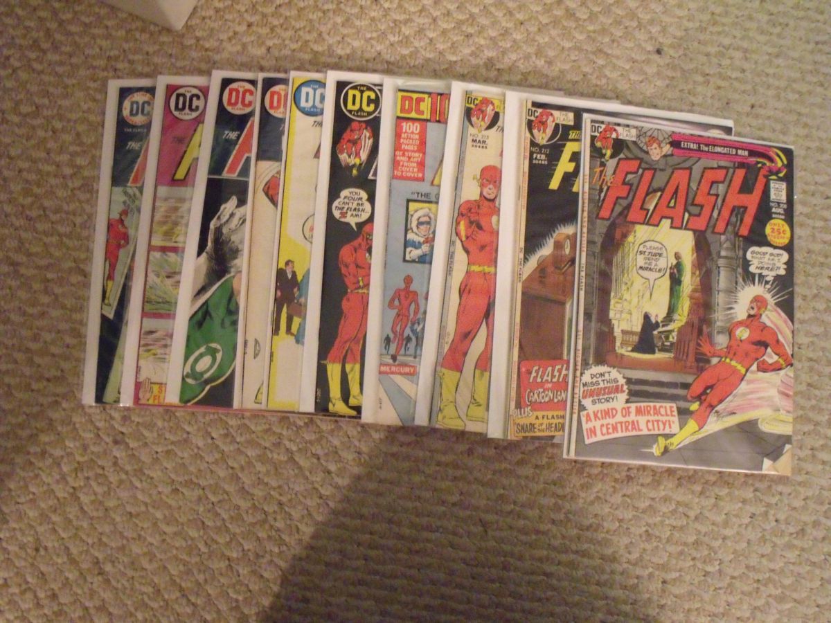 The Flash #208, 212-214, 217-218, 220, 222-223, 226. 10 issues total. Average condition ranges from FN to VF+.