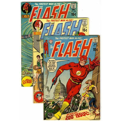 <B>The Flash Group (DC, 1970-72) Condition: Average FN.</B></I> Includes #200, 201 (new Golden Age Flash story), 202, 203, 204, 205 (68-page giant), 206 (Elongated Man back-up stories begin), 208, 209, 210, 211, 212, and 215 (Golden Age Flash crossover). Artists include Carmine Infantino, Irv Novick, and Neal Adams. Approximate Overstreet value for group = $150.<BR><BR><b>Shipping:</b> Comics - Unslabbed (<a target="_blank" href="http://www.heritageauctions.com/common/shipping.php">view shipping information</a>)