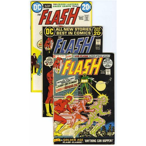 <B>The Flash Group (DC, 1972-76) Condition: Average FN+.</B></I> Includes #216, 217 (Green Lantern/Green Arrow series begins), 218, 219, 220 (Turtle appearance, first since <B>Showcase </B></I>#4), 221, 222, 223, 224, 225, 226, 227, 228, 230, 231, 232, 233, 234, 235 (Green Lantern crossover, 2 copies), 236, 237, 238, and 239. Artists include Neal Adams, Lee Elias, Irv Novick, and Dick Dillin. Approximate Overstreet value for group = $225.<BR><BR><b>Shipping:</b> Comics - Unslabbed (<a target="_blank" href="http://www.heritageauctions.com/common/shipping.php">view shipping information</a>)