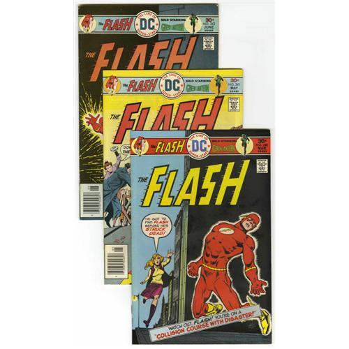 <B>The Flash Group (DC, 1976-79) Condition: Average FN+.</B></I> Includes <B>The Flash </B></I>#240, 241, 242, 243 ("death" of the Top), 244, 245 (origin of the Floronic Man), 246 (last Green Lantern back-up story), 247 (Jay Garrick appearance), 248, 249, 250 (first appearance of the Golden Glider), 251, 252, 253, 255, 256, 257, 258, 259, 260, 261, 262, 263, 265, 266, 267 (origin of Flash's costume), 268, and 276, plus <B>DC Special Series </B></I>#11 (Flash Spectacular) and <B>Super-Team Family </B></I>#11 (Flash and Supergirl). Approximate Overstreet value for group = $175.<BR><BR><b>Shipping:</b> Comics - Unslabbed (<a target="_blank" href="http://www.heritageauctions.com/common/shipping.php">view shipping information</a>)