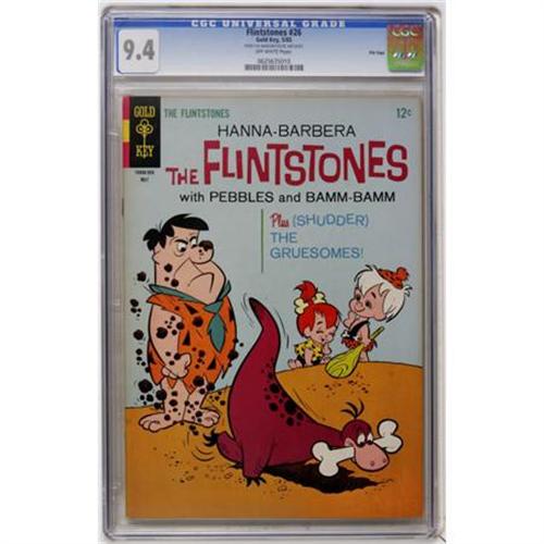 <B>The Flintstones #26 File Copy (Gold Key, 1965) CGC NM 9.4 Off-white pages.</B></I> Second appearance of the Gruesomes. CGC notes, "From the Random House Archives." Overstreet 2007 NM- 9.2 value = $60. CGC census 9/07: 11 in 9.4, none higher.<BR><BR><b>Shipping:</b> Comics - Slabbed (certified) (<a target="_blank" href="http://www.heritageauctions.com/common/shipping.php">view shipping information</a>)